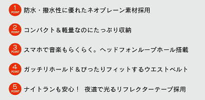 3、イヤフォン専用ループ付き メインポケット正面にはイヤフォンループの穴を設置 音楽を楽しみながらランニングやウォーキングができます・ 4、ポーチ前面には反射テープ付きで夜のランニングも安心 夜道でもしっかり光反射テープ付き。