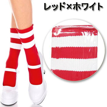 スポーティー感抜群のライン入りハイソックス! チアガールやスクールガール、レフリーコスチュームにもピッタリのデザイン☆